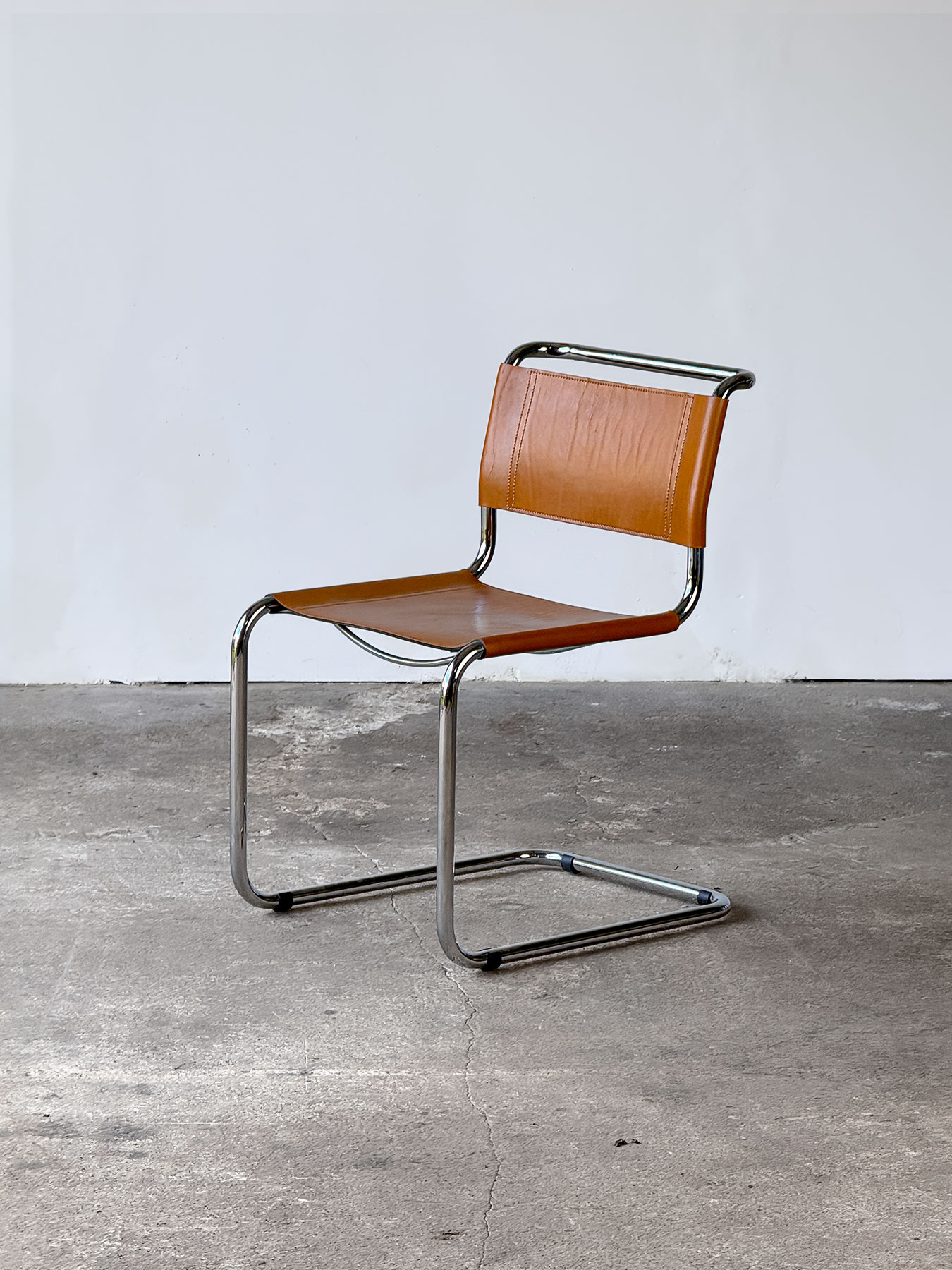brązowe krzesło S33, proj. Mart Stam