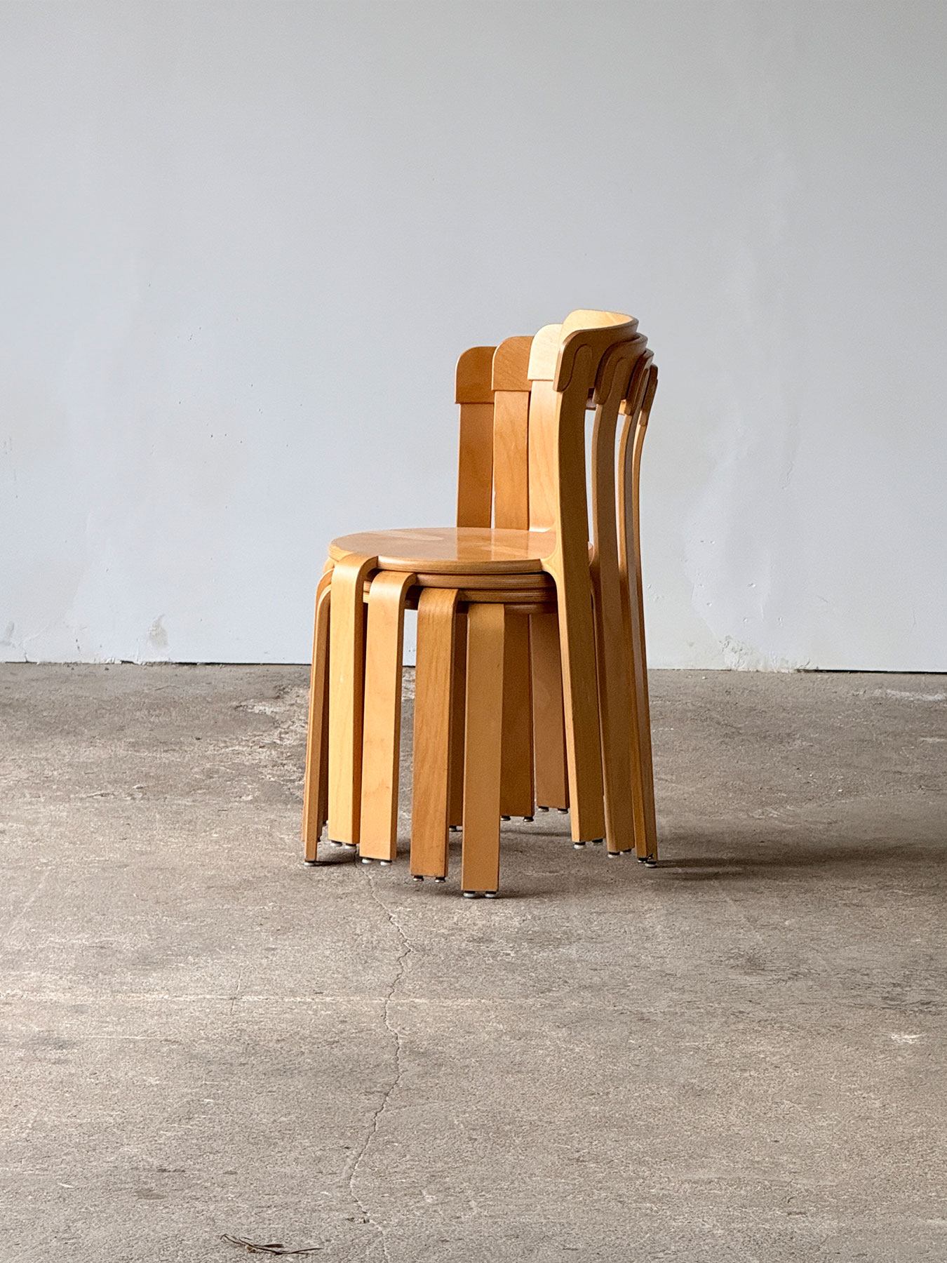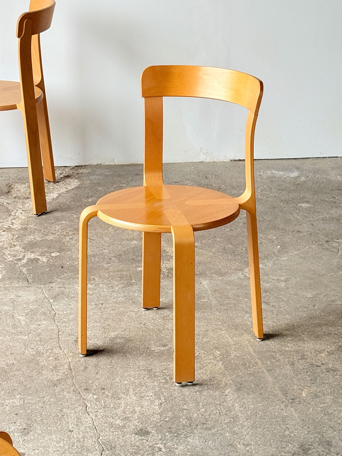 Krzesła Bruno Rey dla Dietiker, zaprojektowane w latach 70., wykonane z wysokiej jakości sklejki liściastej. Charakterystyczna bezśrubowa konstrukcja,…