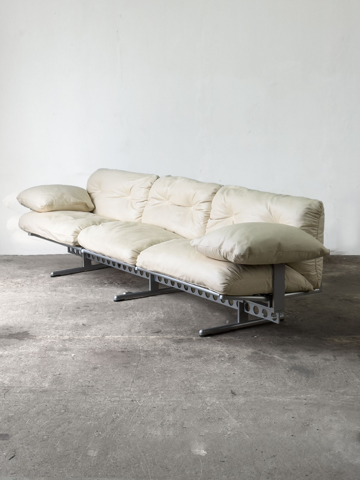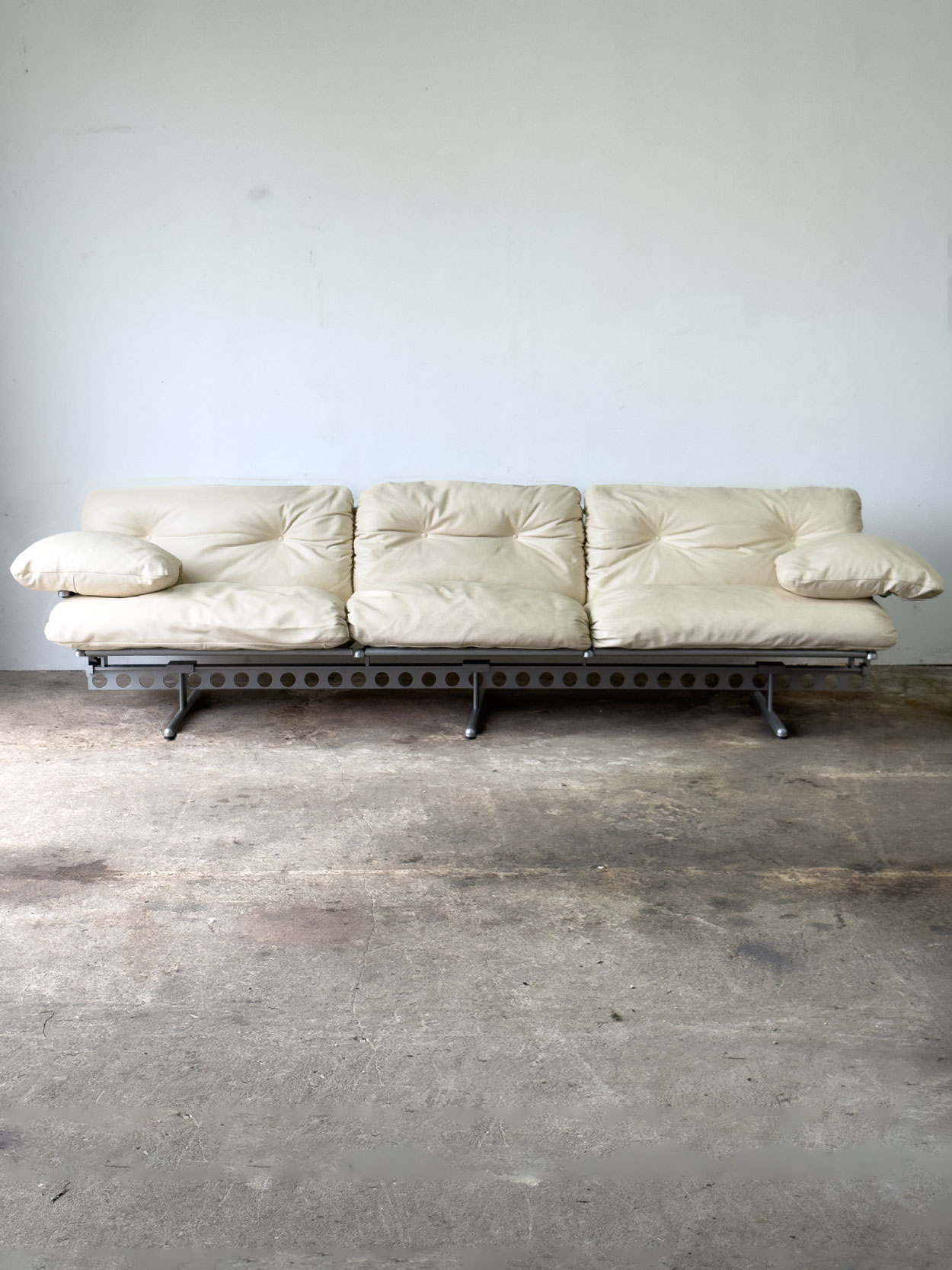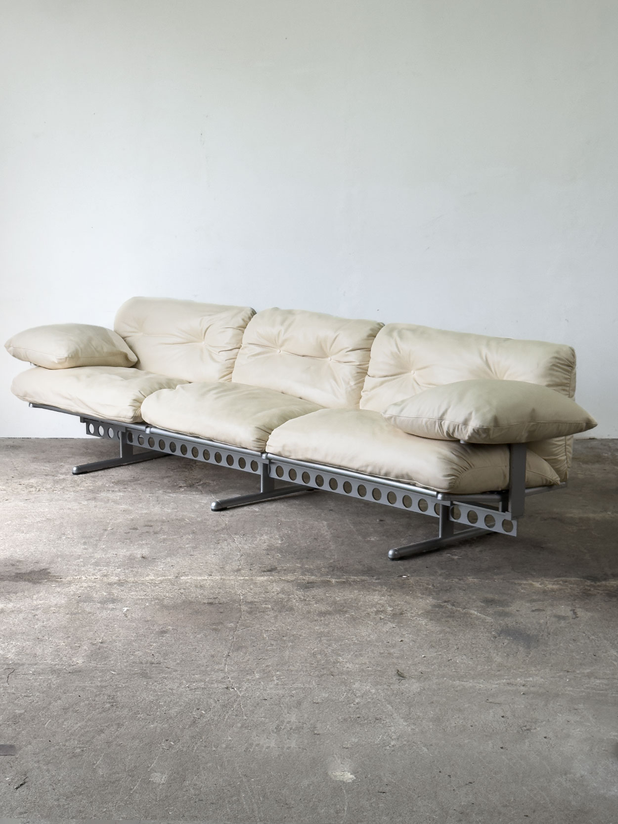 Trzyosobowa sofa Ouverture marki Frau. Beżowa skóra naturalna, spektakularna konstrukcja stalowa w stylu high-tech. Sofa w bardzo dobrym…