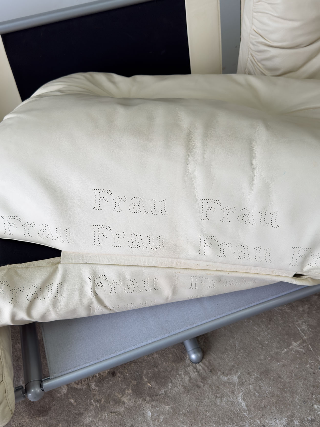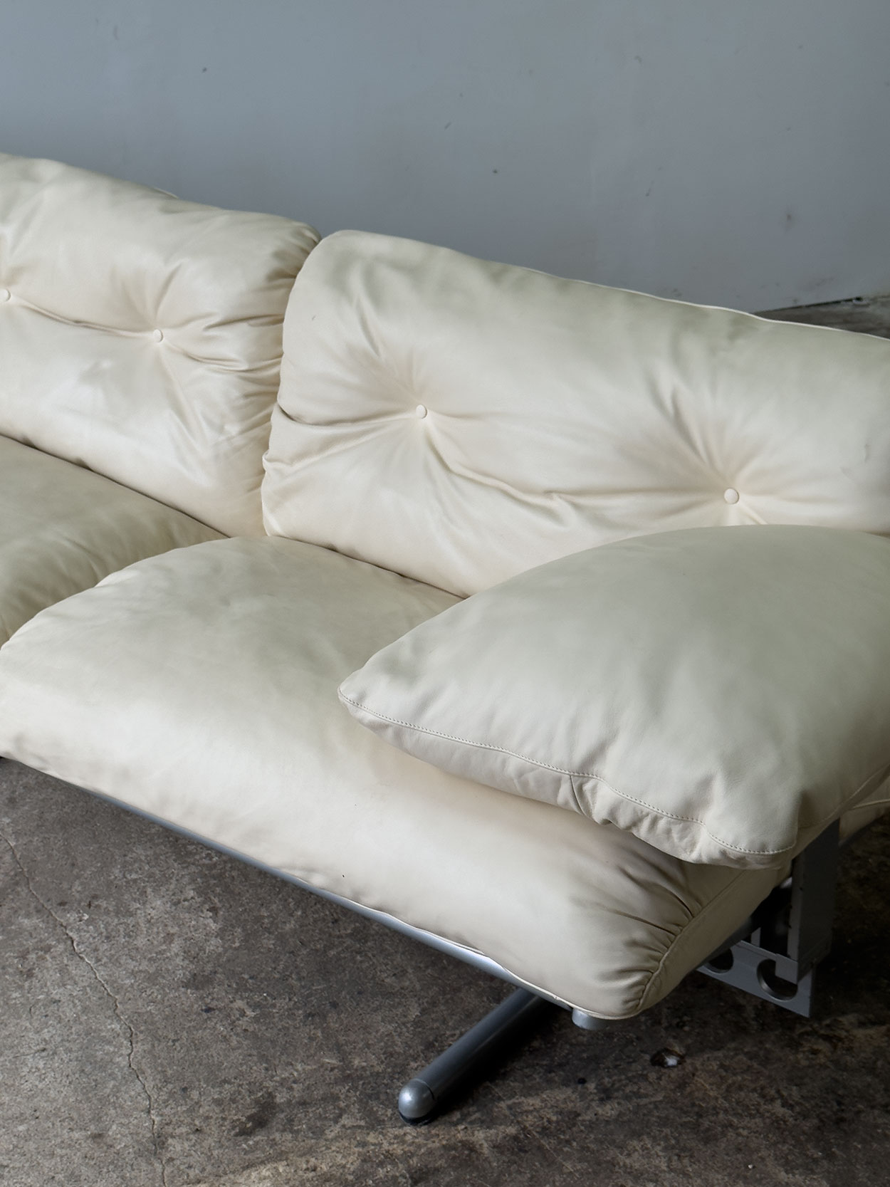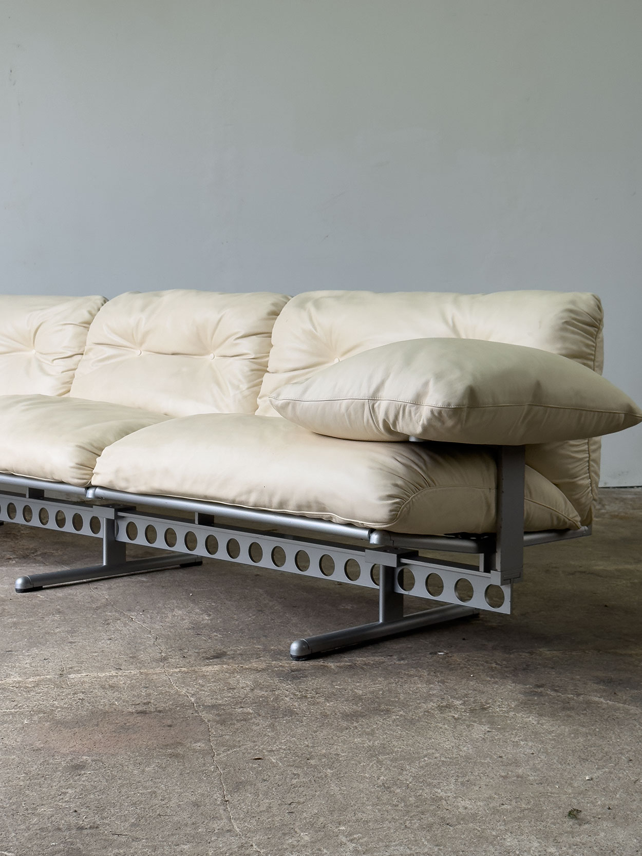 Trzyosobowa sofa Ouverture marki Frau. Beżowa skóra naturalna, spektakularna konstrukcja stalowa w stylu high-tech. Sofa w bardzo dobrym…