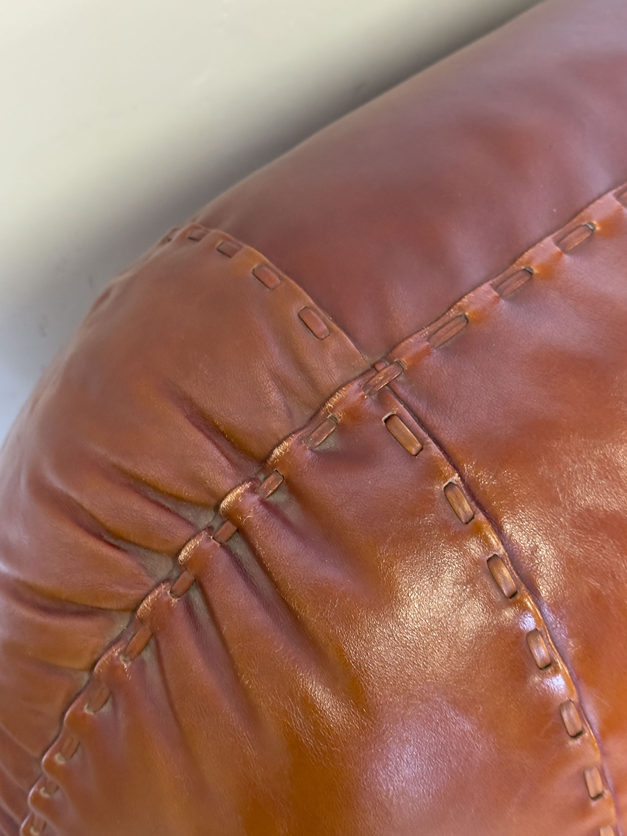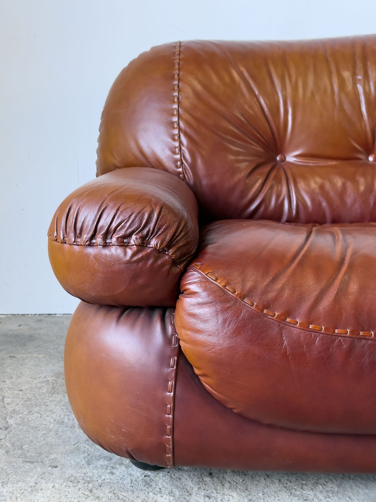 Skórzana kanapa Sapporo od Mobil Girgi. Naturalna bordowa skóra, stan bardzo dobry z lekką patyną. Komfortowa, stylowa, włoska jakość.