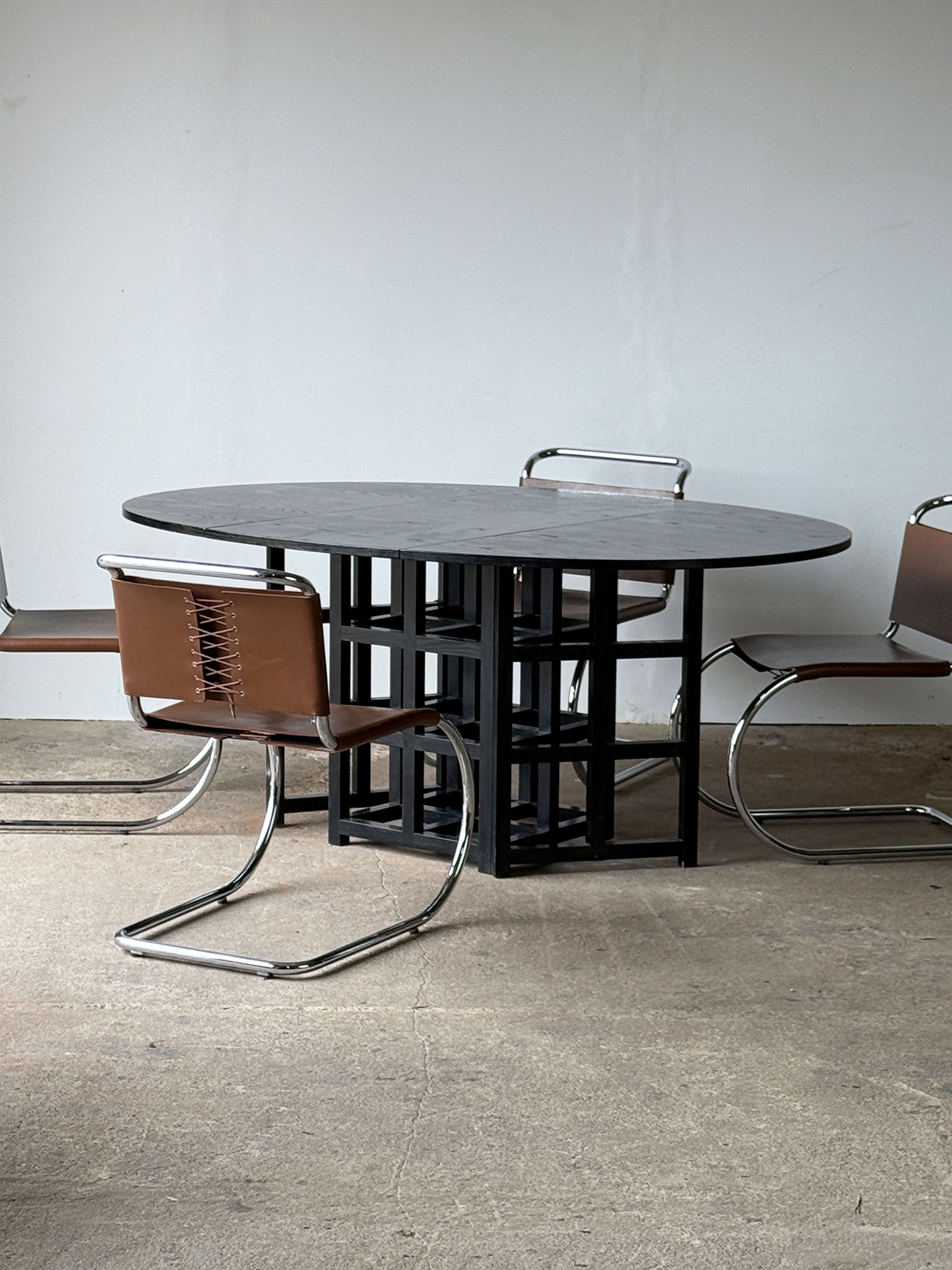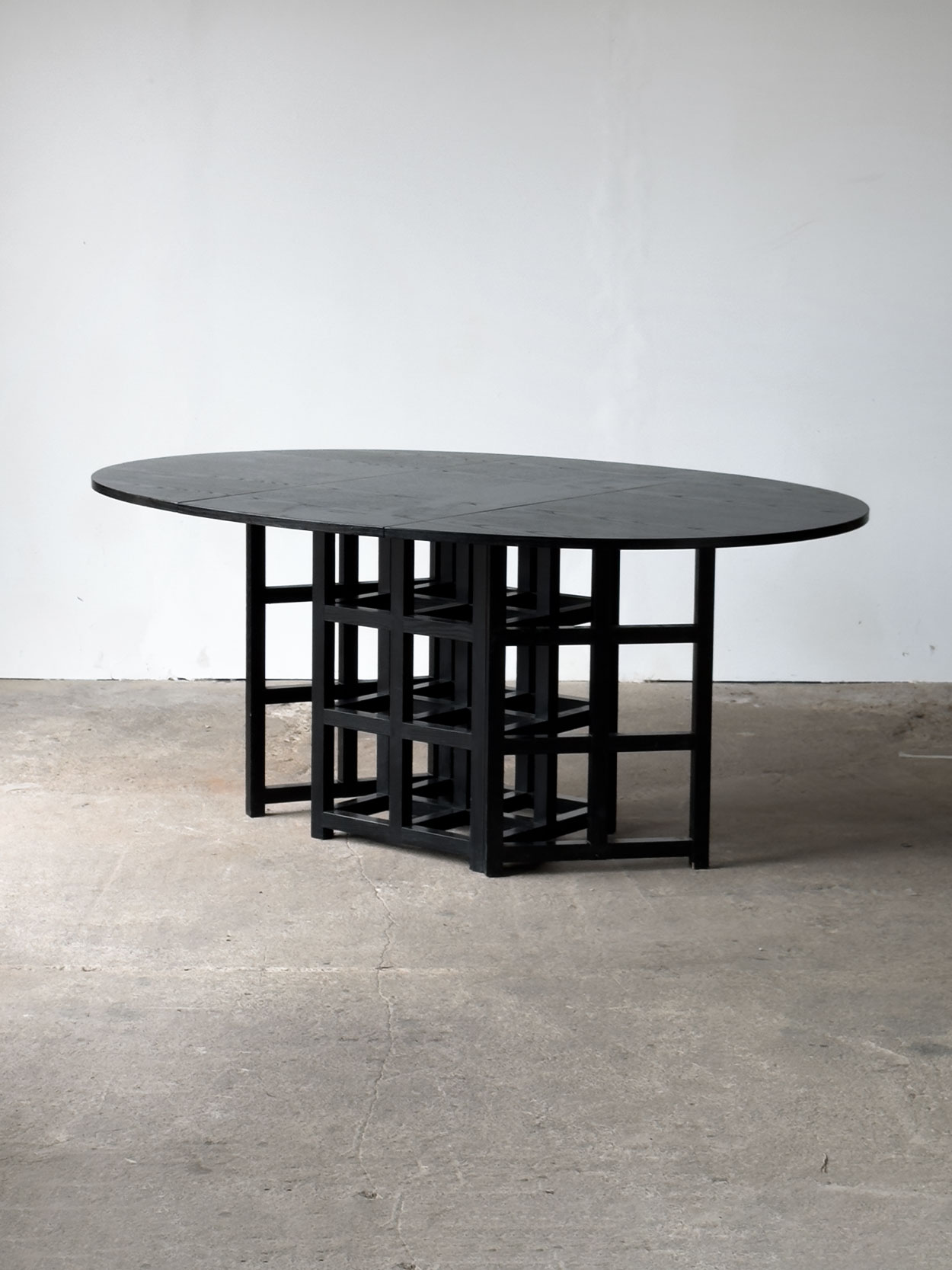 Owalny stół rozkładany inspirowany projektem Charlesa Rennie Mackintosha z 1918 roku. Wykonany z drewna jesionowego, fornirowany, lakierowany na…