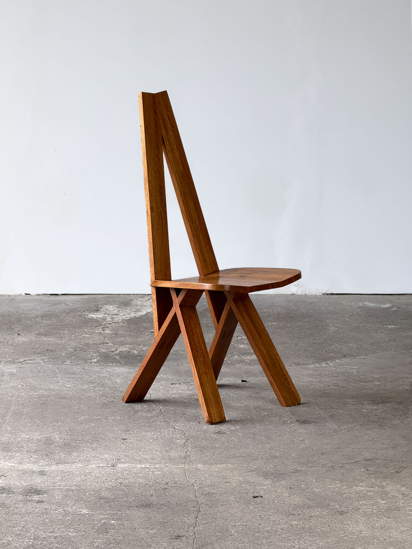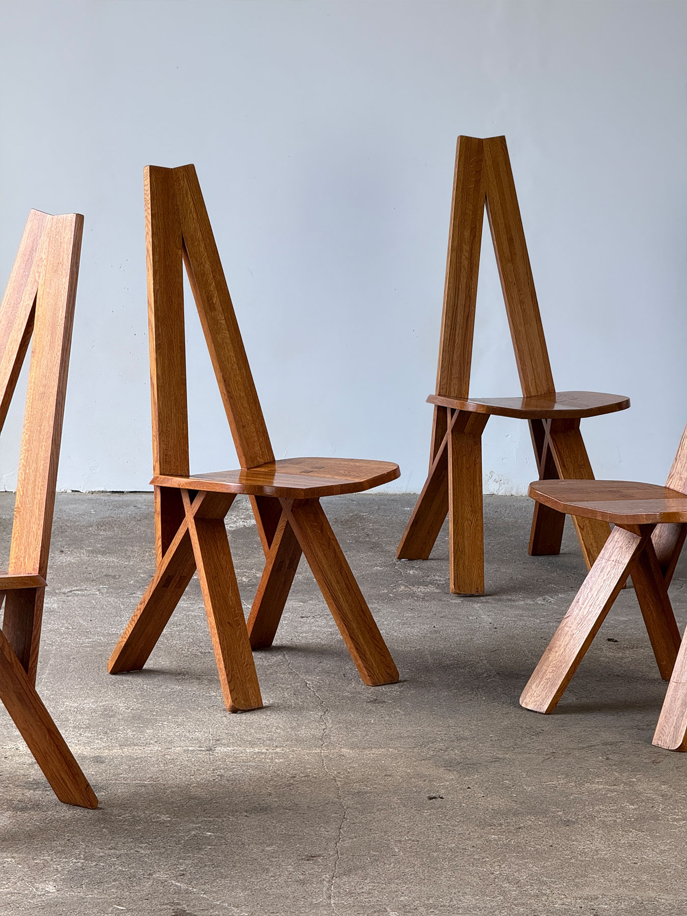Krzesła nr. S45, znane również jako „Chlacc,” zaprojektowane przez cenionego francuskiego architekta i rzemieślnika Pierre’a Chapo, to ikona europejskiego designu.. Zaprezentowane przez autora w 1979 roku, były efektem opracowania innowacyjnego procesu łączenia drewna nazwanego (i opatentowanego) „Chlacc.” Proces ten polega na precyzyjnym łączeniu wąskich kawałków drewna za pomocą kleju, co pozwala na uzyskanie lekkiej, smukłej konstrukcji o wyjątkowej trwałości