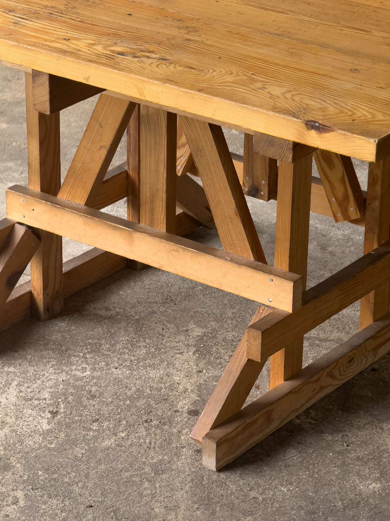 Kwadratowy stół o wymiarach 140 × 140 cm, wykonany na podstawie projektu Enzo Mari z katalogu Autoprogettazione (1974). Model powstał około 10–20 lat temu na…