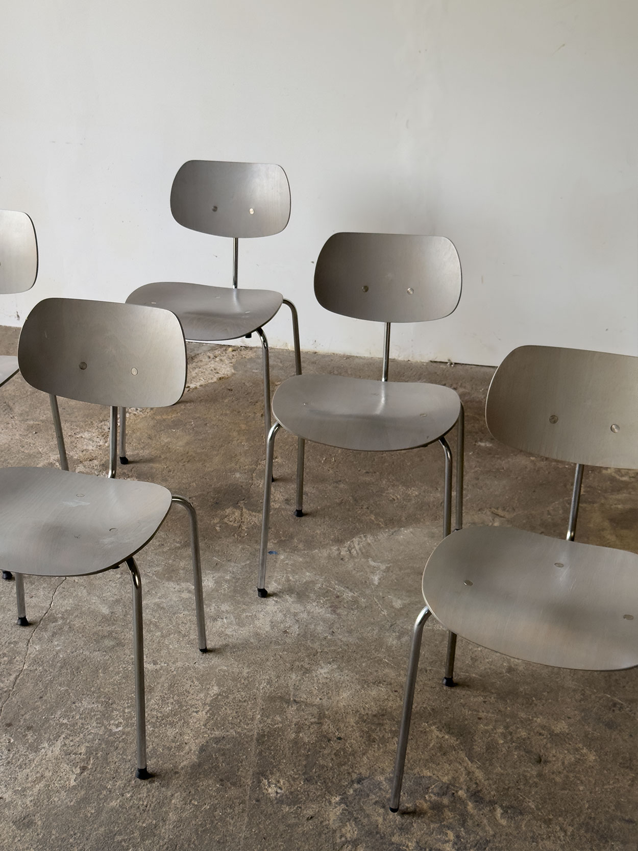 Krzesło SE 68 Egona Eiermanna, produkcji Wilde + Spieth. Szara sklejka i chromowana stal. Zachowane w doskonałym stanie,…