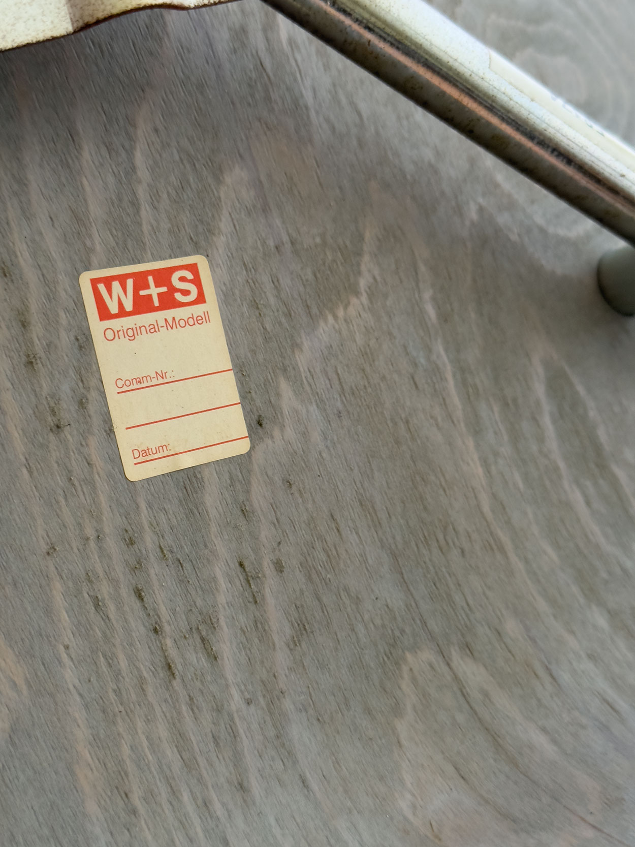Krzesło SE 68, projekt Egona Eiermanna z 1951 roku, wyprodukowane przez Wilde + Spieth w Niemczech. Model sygnowany, w rzadkim i oryginalnym wybarwieniu – siedzisko…