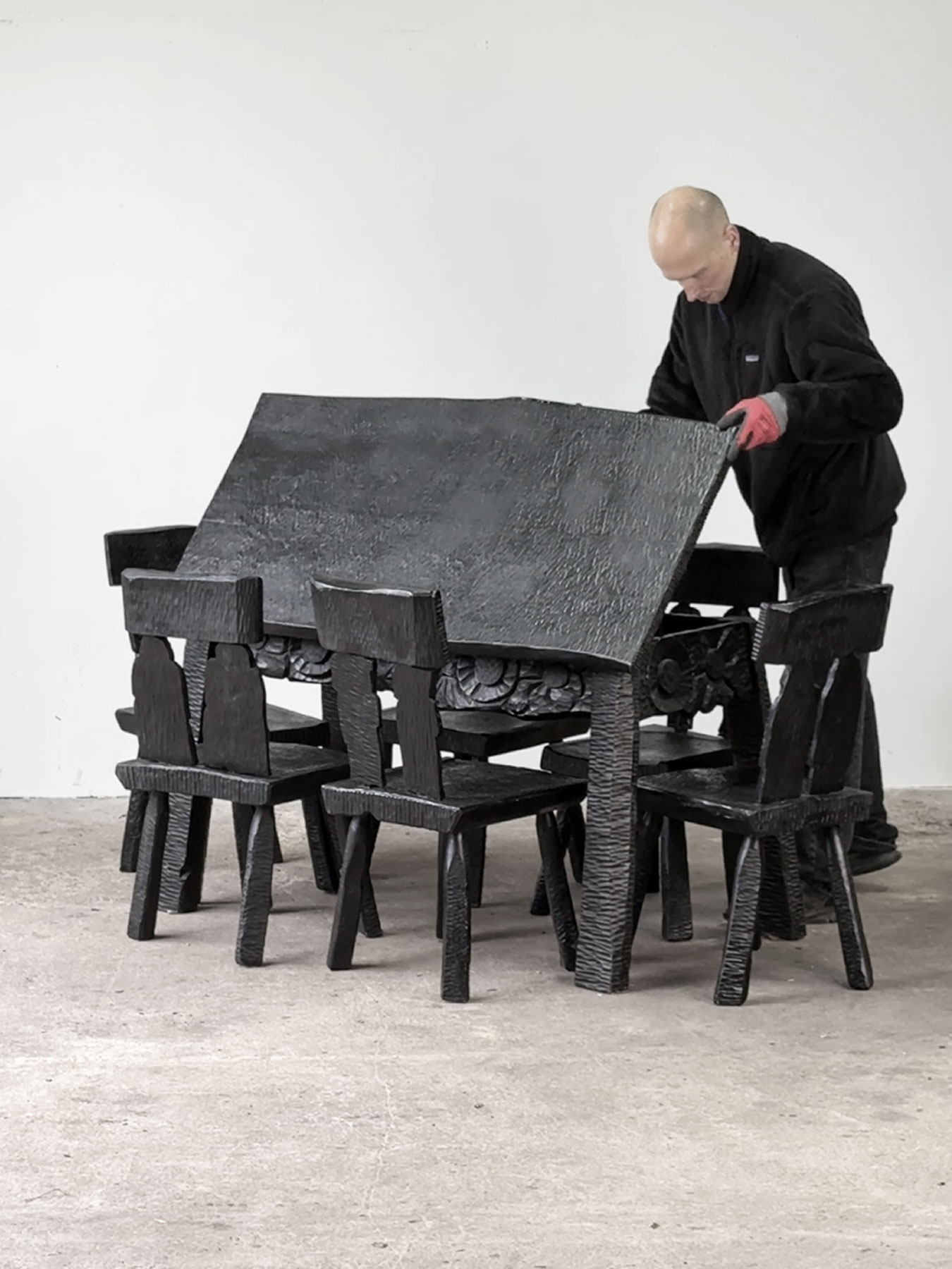 Bogato rzeźbiony stół jadalniany w stylu zakopiańskim, zaprojektowany dla sześciu osób, z funkcjonalną klapą. Blat stołu jest podnoszony, a pod nim znajduje się praktyczny schowek.…