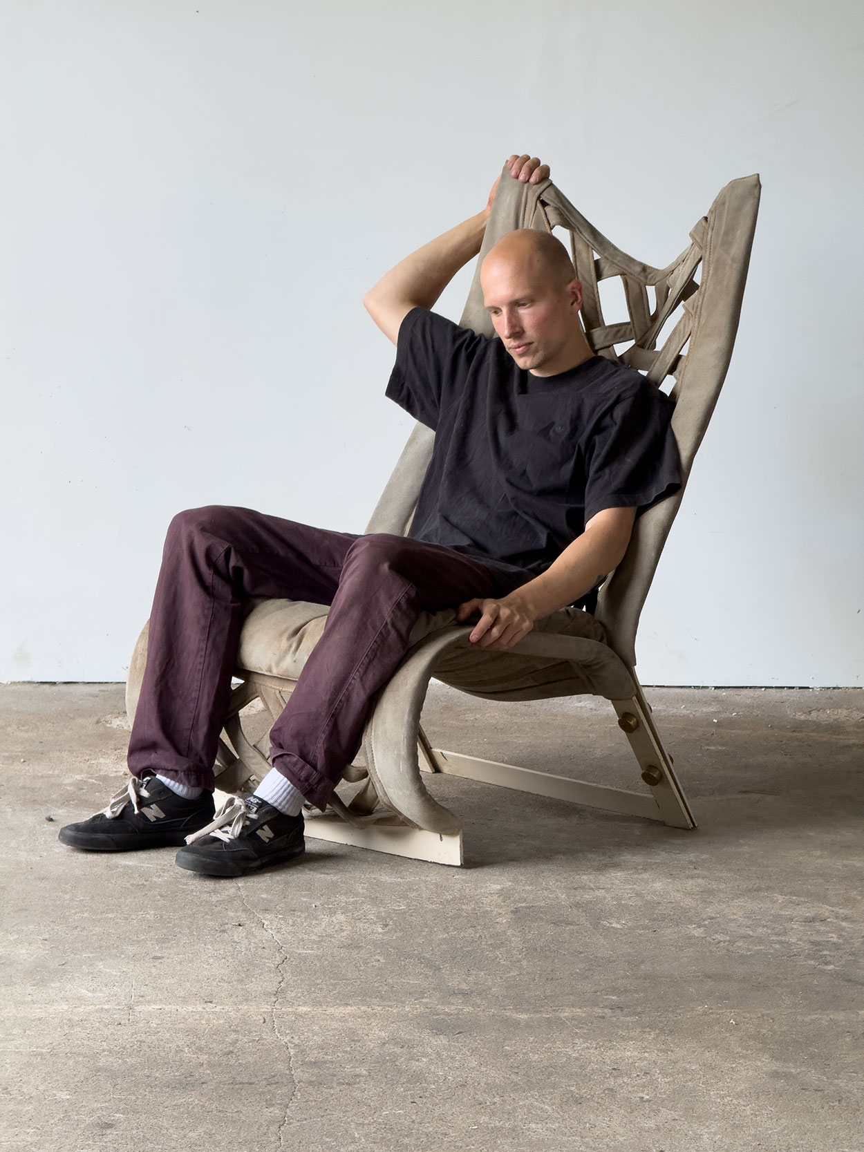 Forma fotela, ekspresyjna i nieco przeskalowana, wpisuje się w charakterystyczny język projektowy Cecchiego, łączący surowość stalowej konstrukcji z miękkością i zmysłowością tkaniny.